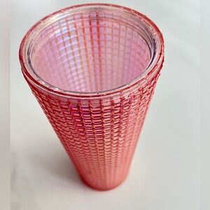 With buyer appreciation gift: Starbucks 16oz reusable frosted cold cup with lid.