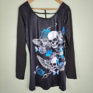 skull candy butterfly punk goth tunic mini dress plus size curvy woman gothic witchycore skulls death Halloween holiday casual stretchy comfortable comfort boho bohemian coastal kawaii