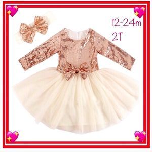 Rose Gold Sequin & Tulle Flower Girl Birthday Party Dress