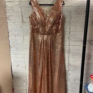 Rose Gold Sequin Formal Cocktail Wedding Dress Large/XL