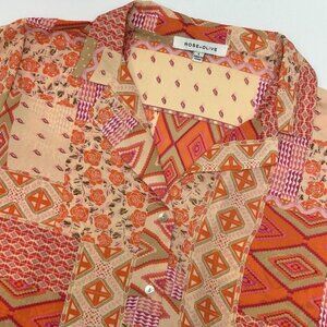 Rose+Olive Top Womens Large Cropped Boxy Aztec Floral Orange Pink Button Up Shirt Blouse