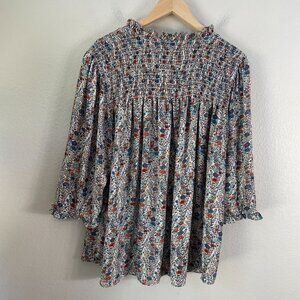 Rose+Olive Womens Plus 2X Floral Smocked Blouse Ruffled Neckline 3/4 Sleeves Top