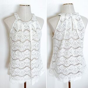 Beautiful dressy top with lace overlay. Gathers at neck crest a beautiful flowing top.