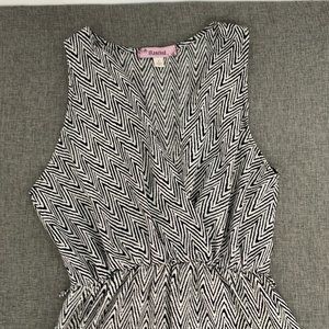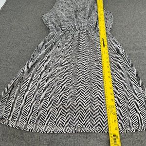 Rosebud Classic Dress Cinched Elastic Waist Large Made USA Low V-Neck Black Whit