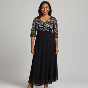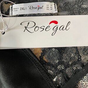 Rosegal Black Sequin Floral Maxi Dress 2XL Elegant Evening Formal Wedding Guest