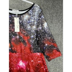 Rosegal Galaxy Fit & Flare Dress Women Size US 18 Stretch 3/4 Sleeve NWT