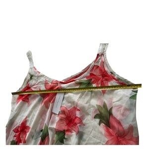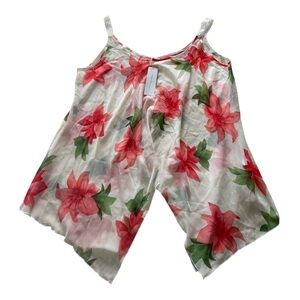 This sleeveless camisole sheer from Rosegal features a relaxed, asymmetrical design with a vibrant pink and red floral pattern. The lightweight fabric drapes beautifully, making it perfect for a breezy, stylish look.