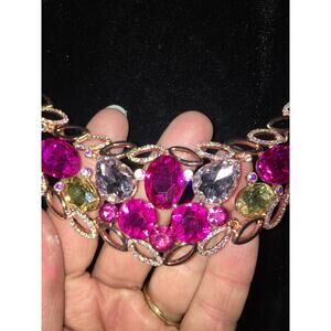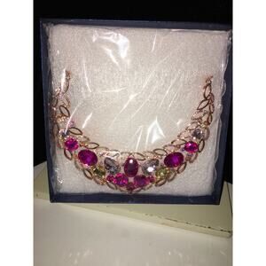 Rosegold Hot Pink Statement NECKLACE Bib Austrian Crystal Jewelry Gems HSN NEW