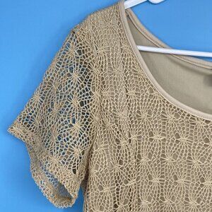 Rosegold Petite Girls Dress Size XL Tan Knit Overlay Short Sleeve Knee Length