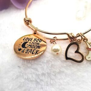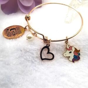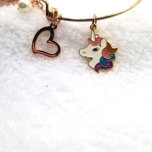 Rose gold toned Adustible bangle cuff charm bracelet.