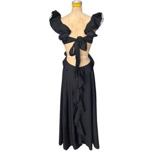 Roselvelvet Elegant Black Dress with Ruffled Shoulders and Open Back Size S,M