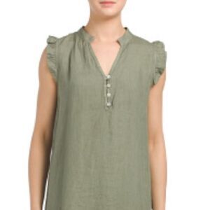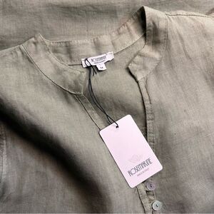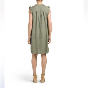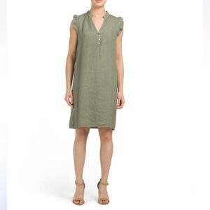 Rosemarine - Made In Italy Olive Green Button Front Linen Dress
