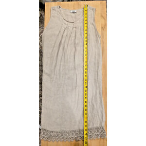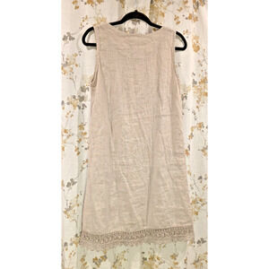 Rosemarne Linen Sheath Dress Medium Crocheted Hem Italian Beige Coastal Casual