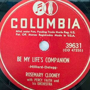 Rosemary Clooney Be My Lifes Companion 10in Shellac 78 RPM Columbia 39631