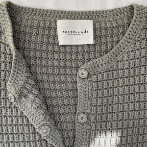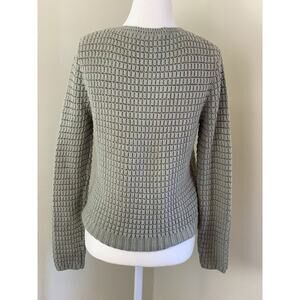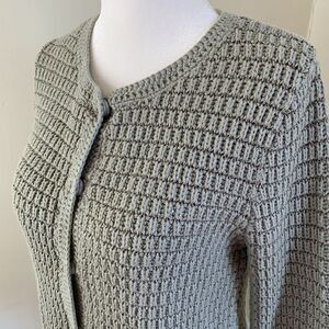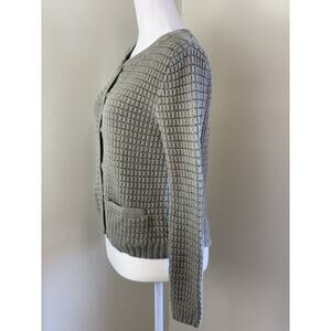 Rosemunde Chunky Knit Pocket Cardigan Sweater Snap Sage Green Gray Metallic XS S