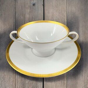 Rosenthal Germany White Gold Band Black Lines Double Handle Cup Saucer