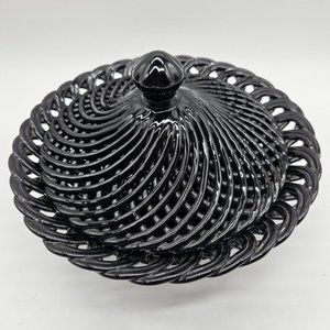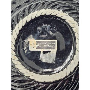 This stunning MCM candy dish from Rosenthal Netter is a true masterpiece of Italian ceramic craftsmanship. The woven design and black color make it a stylish addition to any home decor, while the vintage touch adds a touch of nostalgia to your collection. The dish comes with a cover, making it ideal for storing candies, trinkets, or other small items. The dish is made of high-quality ceramic material that ensures its durability and long-lasting performance. Whether you're an art collector or just someone who appreciates fine craftsmanship, this candy dish is a must-have item in your home. There are a few chips- please see photos. Pre-owned in good condition