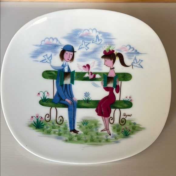 Rosenthal Raymond Peynet Plate Dish Porcelain Lovers Bench Doves Germany Vintage