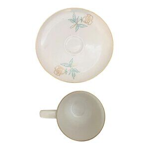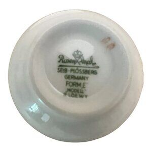 This elegant teacup and saucer set from Rosenthal showcases a delicate floral design. Crafted in Germany, the set's refined aesthetic and high-quality china make it a valuable addition to any collection or tea service. Saucer Dia, 5 in, Teacup height 2 in.