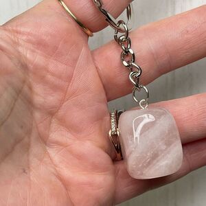 Rose quartz cube keychain key ring pendant chain NEW hand crafted
