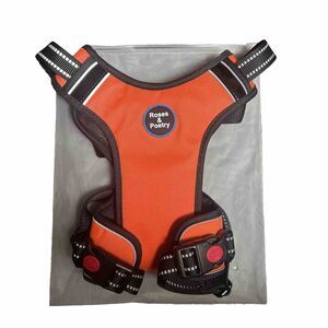 The Roses And Poetry Dog Harness is a soft and comfortable vest harness designed for large breeds of dogs. It comes in size XL and is made of mesh material. The harness features a non-pull design, making it perfect for outdoor activities. The orange color adds a touch of style to the harness, which is suitable for both male and female dogs.
