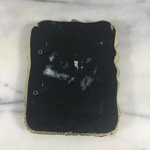The frame will hold an image that is 2 ½" x 3 ½" (6cm x 9cm). Also, as can be seen in the second picture, the flap that will hold the frame upright on a counter is not there. It has to either lie flat or be attached to a wall.