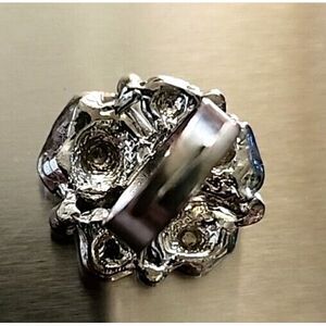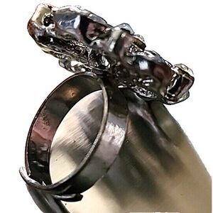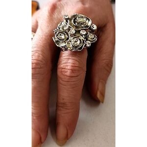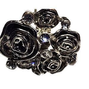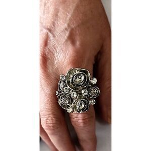 This beautiful ring features delicate flower shapes adorned with sparkling rhinestones.