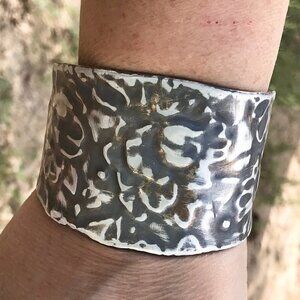 Thank you for looking at this handmade one of a kind newly designed embossed cuff bracelet. This cuff is solid sterling silver.