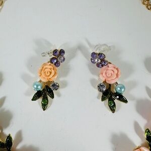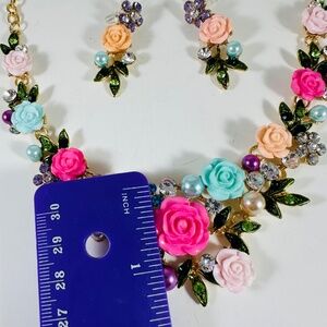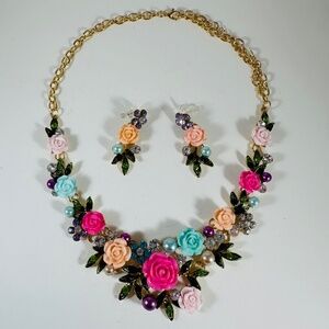 Roses galore in beautiful spring and summer colors in this necklace set.
