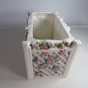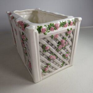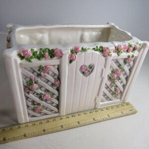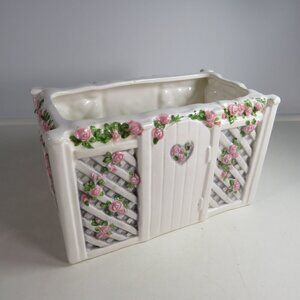 Roses on a Lattice Garden Wall & Gate Ceramic Planter All 4 Sides Embossed 1lb+