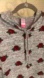 Cute like new. Roses adorned all over this lightweight hooded gray knit sweatshirt.