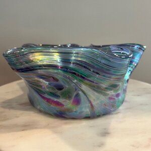 Star Shaped Dish with Mottled Purple, Blue and Green