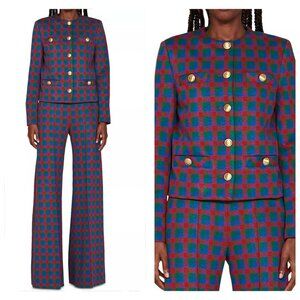 Rosetta Getty Check Jacket & Wide-Leg Pants Set | Cobalt Check | Size M | NWT