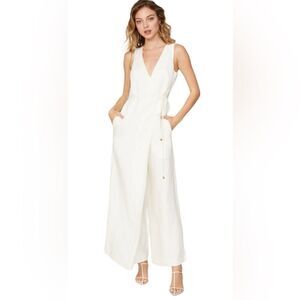 White linen blend (65% Rayon, 35% Linen). Jumpsuit.