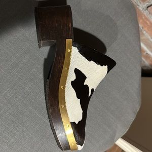 Rosetta Getty Mule clogs. Beautiful ivory and black cow print calf hair, gold trim and wooden clog base. Size 40. New with box. Never worn. With dust bag.