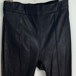 Black Pintuck Leather Flare Pants