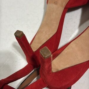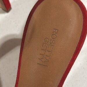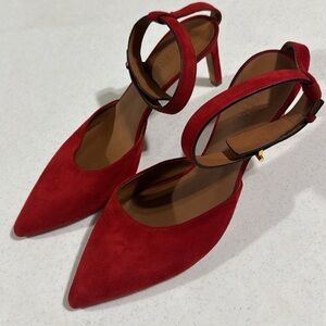 Rosetta Getty Red Pump Heels EUC Size 9 - 9.5. Pointy toe with an ankle strap buckle. Normal wear. Gold hardware on right heel is missing but shoes are still functional. Open to reasonable offers.