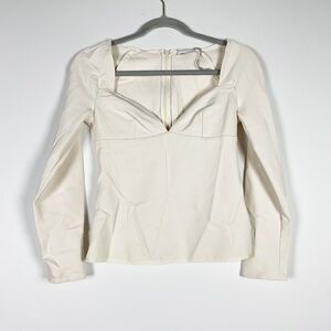 Rosetta Getty Sweetheart Long Sleeve Scuba Stretch Blouse Shirt Top Parchment
