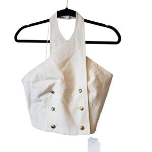 Rosetta Getty White Cotton Linen Button Criss Cross Halter Top Gold Buttons Chic