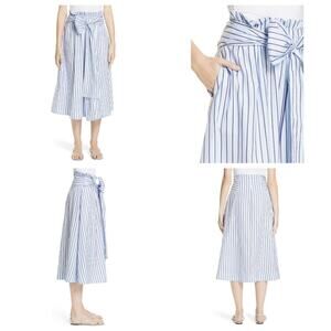 Rosetta Getty Wrap Panel Stripe Poplin Midi Skirt - Size 2 - New with Tags (NWT)