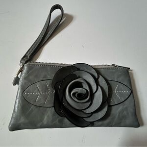 Rosette Elegant Gray Floral Clutch- zip top - never used