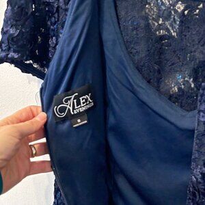 Full info (including size chart): https://alexevenings.com/products/cocktail-dress-in-rosette-lace-with-cap-sleeves