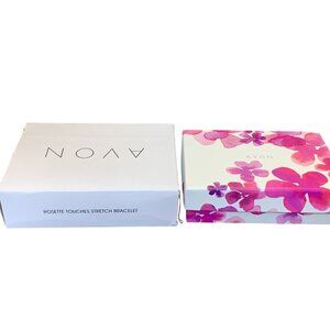 This Avon bracelet embodies a timeless elegance reminiscent of bygone eras. The faux pearl beads and delicate rosette charm create a sophisticated accessory for the discerning vintage enthusiast. The stretch design ensures a comfortable fit, making it a versatile adornment for a variety of ensembles.