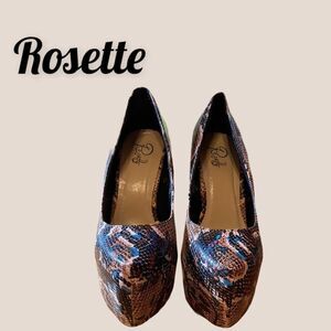 Nice! pair of women's Rosette snake, platform heels. Size: 7.5 Preowned (ref up)