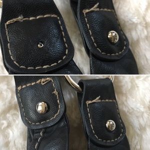 Gently used, great condition! No scratches, tears, stains, holes, etc. All zippers work. One of the metal studs on the inside of the straps is missing- pictured. Not visible when in use. The lining may have some residual dust, etc, from storage and use.
