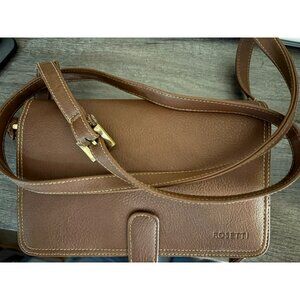Rosetti Brown Faux Leather Crossbody Wallet Purse