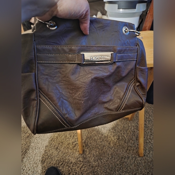 The Rosetti Brown purse Bag combines a sleek leather-like finish with a structured design, making it a stylish choice for any occasion. Its rich brown color and silver hardware add a touch of elegance, while the smooth material ensures durability and a modern look.