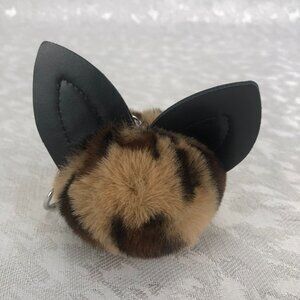 Attached is a 2½-inch leopard pattern pom-pom with black- and gold-colored ears.