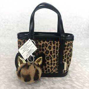 Rosetti Leopard and Black Multi-Pocket Small Purse with Pom-Pom Cat Keychain