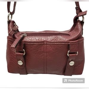 Rosetti Maroon Small Faux Leather Crossbody Handbag Purse